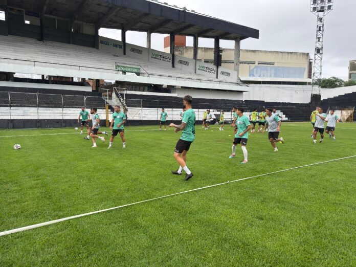 Após a reforma do gramado, o elenco treina pela primeira vez no estádio nesta preparação para Série D 2026.